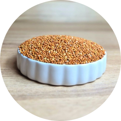 色付きのキビで、抗酸化成分ポリフェノールを微量に含みます。見た目の彩りにも適しています。